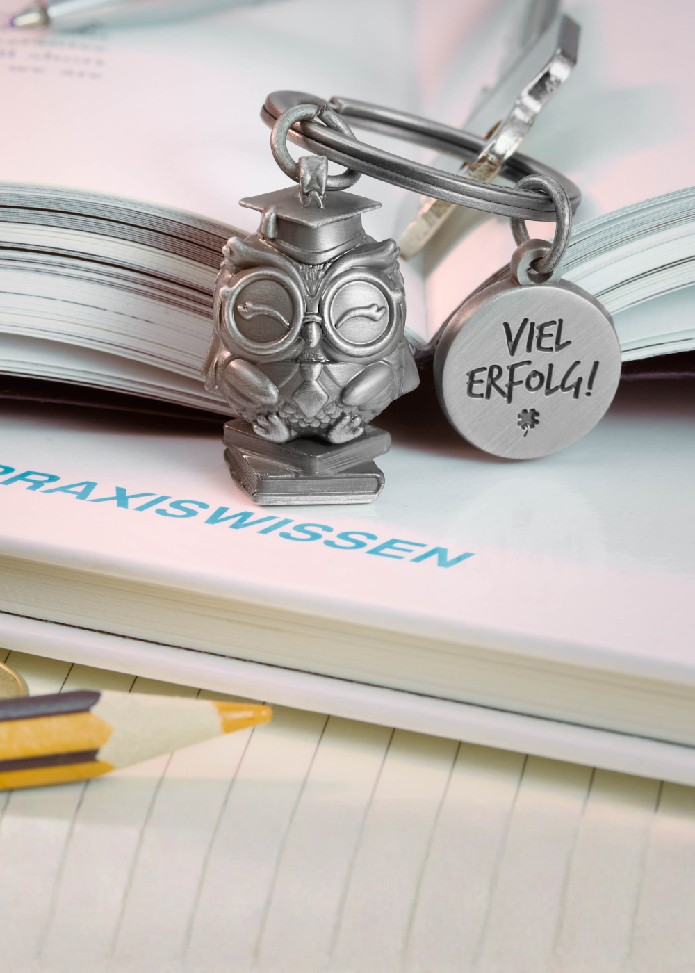 Oder wie wäre es mit unserer Eule "Owly"? Als Trendtier steht die Eule nicht nur für Weisheit, sondern erinnert auch jeden Tag an seinen Lieblingsmenschen und lässt das Herz höherschlagen, wenn man sie am Schlüsselbund trägt.