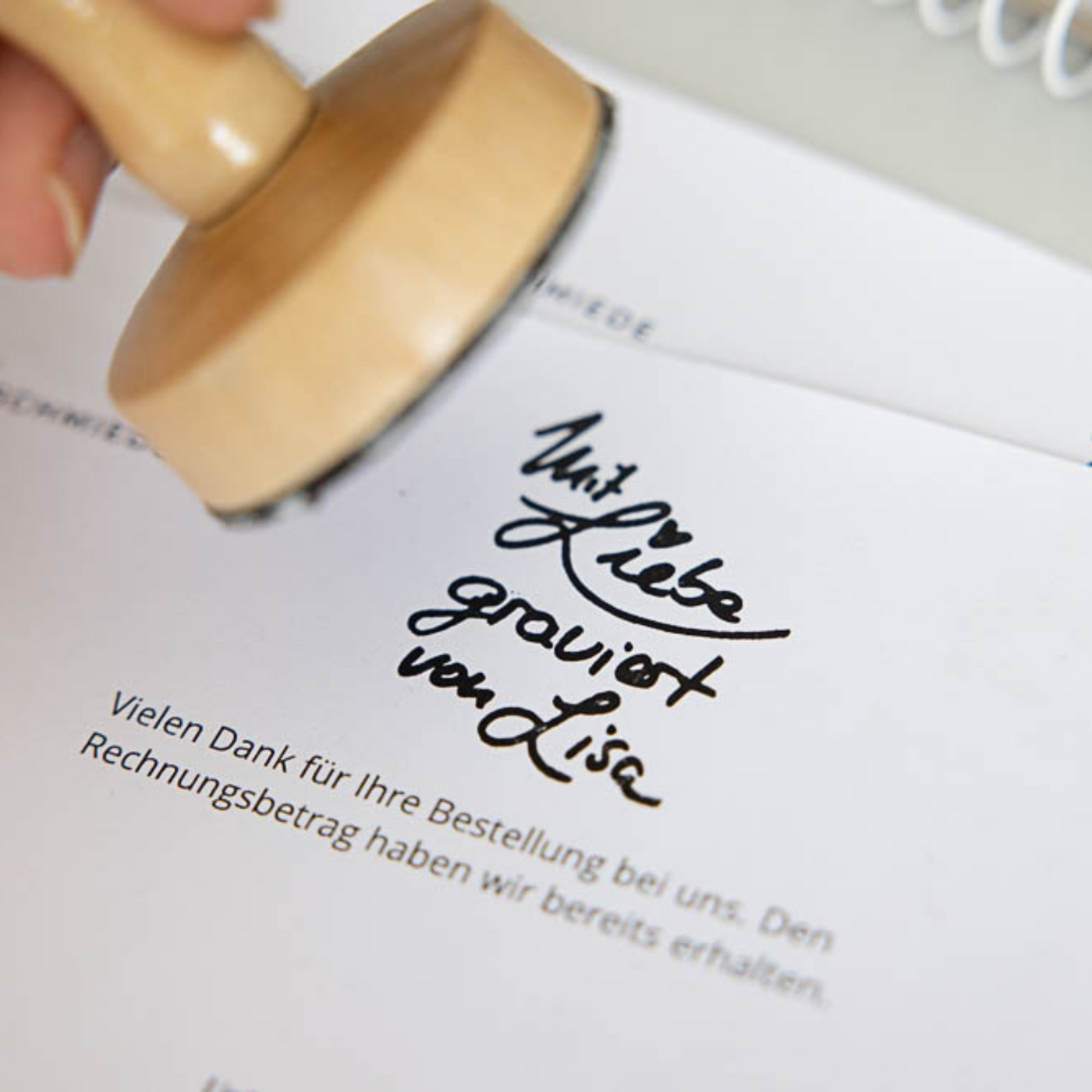 Unsere Graveurin Lisa kümmert sich mit viel Liebe und Sorgfalt um deine Bestellung und graviert jeden Schlüsselanhänger nach deinen Vorstellungen.
