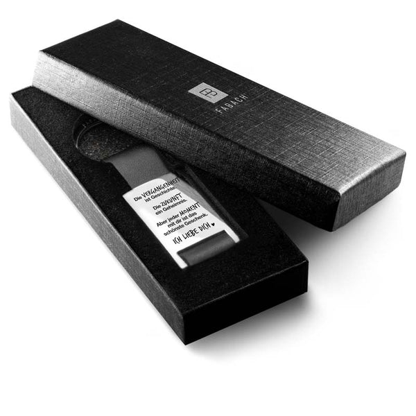 Der Geschenk-Schlüsselanhänger wird - gebettet in Samt - in einer edlen Geschenkbox an dich versendet. Durch hochwertigste Materialien und einem aufwendigen Mirror-Finish behält die kleine Liebeserklärung ihren unwiderstehlichen Silberglanz und das Metall bleibt rostfrei. Die filigran aufgebrachte, beständige Lasergravur ist trotz der geringen Größe gut lesbar und rundet dein persönliches Geschenk mit einer bedeutungsvollen Botschaft ab.