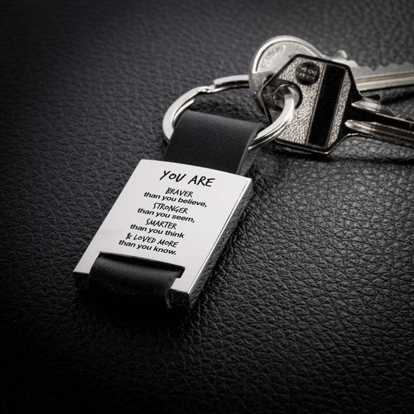 "Du bist mein Halt" Rectangle-Schlüsselanhänger mit Gravur aus Leder - Liebevolles Geschenk für Ehemann Ehefrau Partner Partnerin