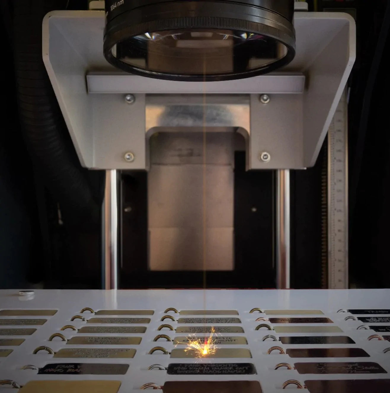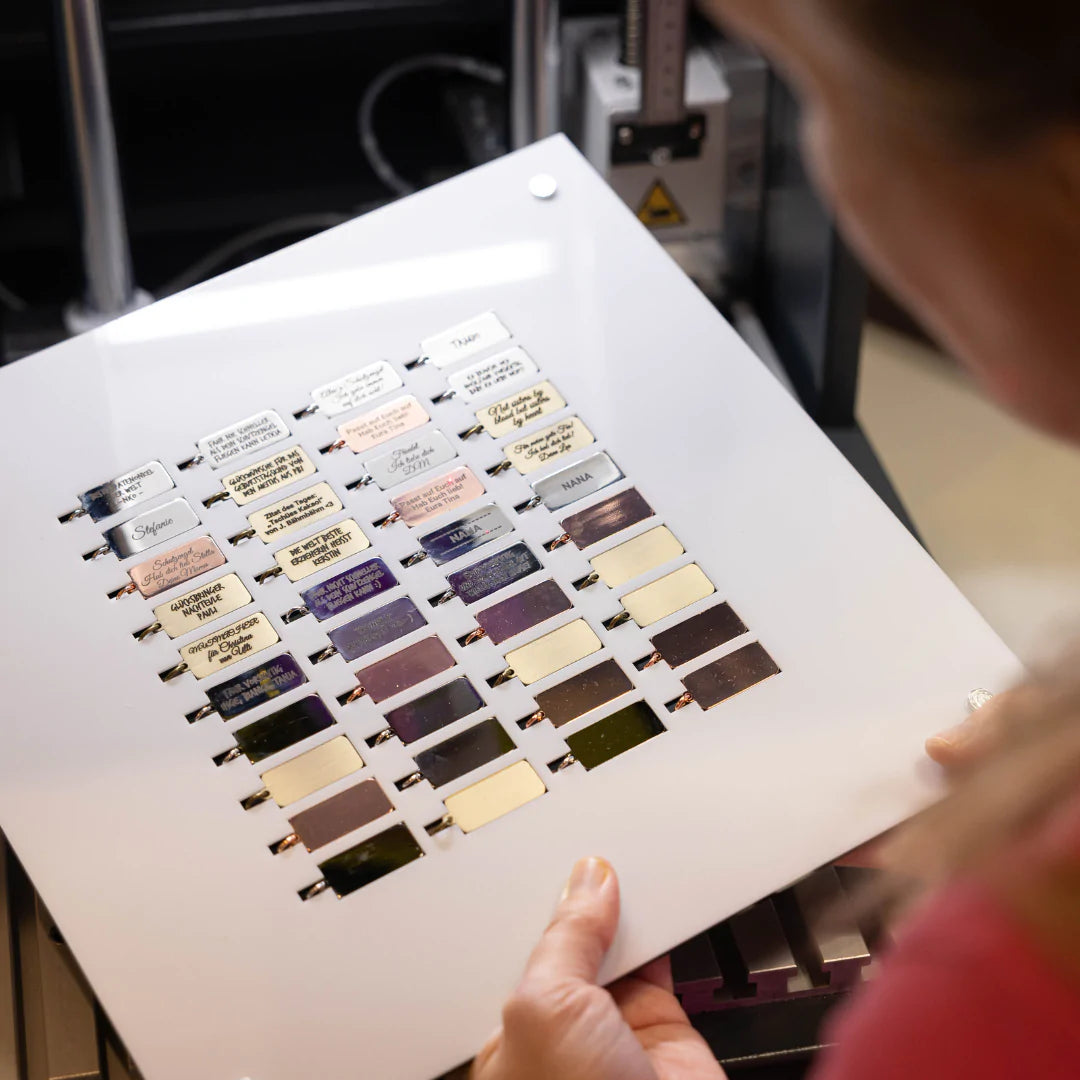 We use a state-of-the-art laser machine for engraving, which engraves our high-quality key chains with precision. After careful alignment, the individualized engravings are burned into the material. We then check the result, lovingly prepare the product and carefully package it for reliable shipping. An engraving for eternity, made with love!