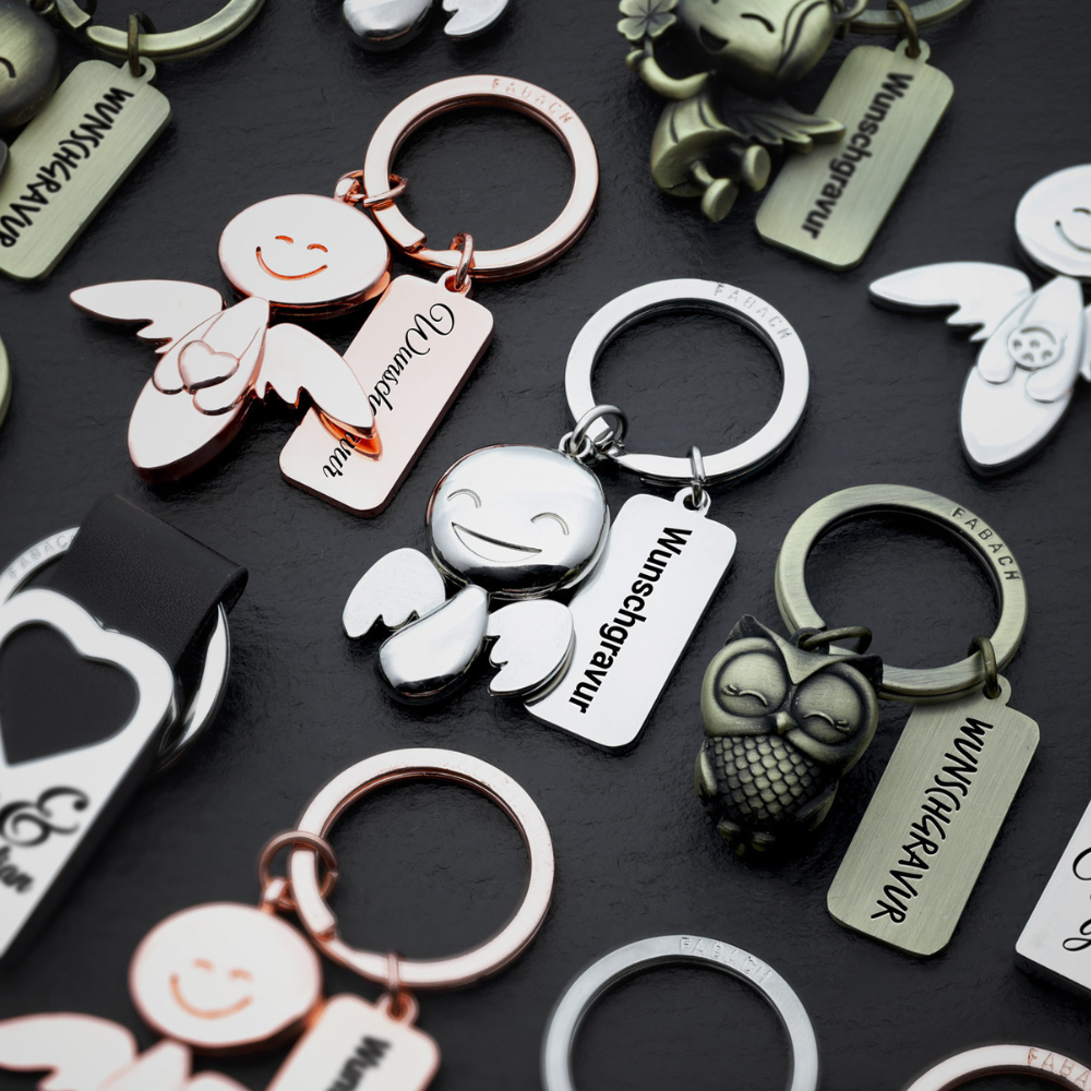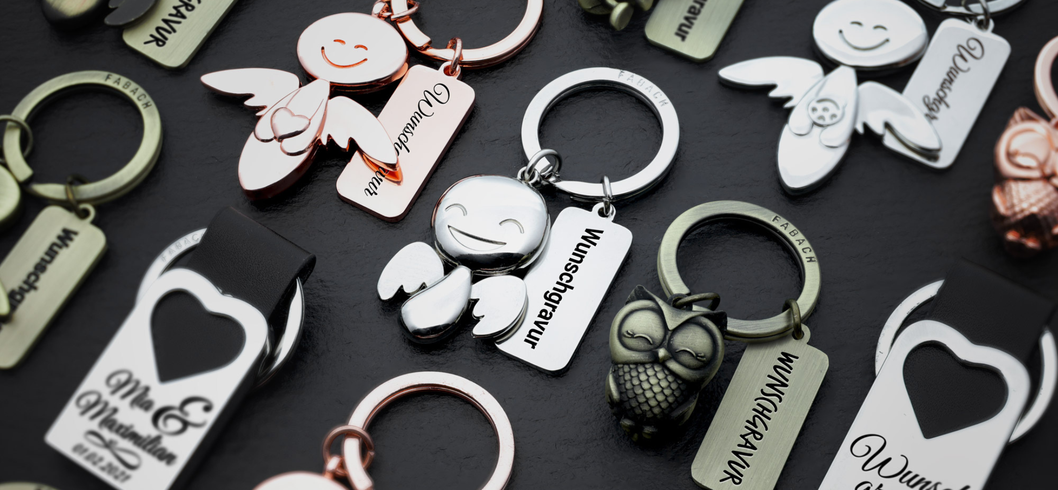 Ces porte-clés personnalisés constituent également de merveilleuses idées de cadeaux. Vous montrez au destinataire combien de réflexion et d’efforts vous avez consacré à créer quelque chose d’unique. Un cadeau qui est non seulement de haute qualité mais aussi d’une profonde valeur émotionnelle. Chez FABACH, nous veillons à ce que ces gravures soient réalisées avec précision et art, afin que vous receviez un porte-clés qui impressionne et touche votre personne préférée en termes de qualité de fabrication, de design et de votre message individuel.