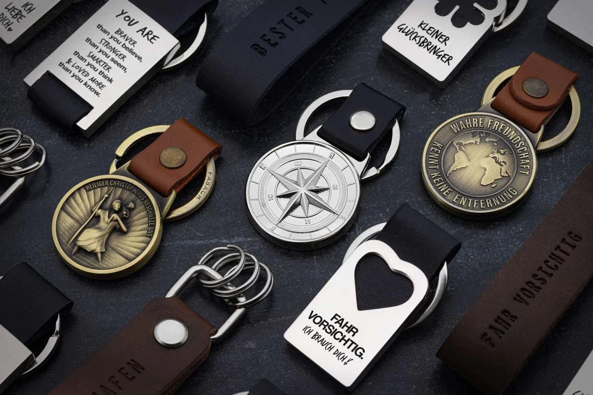 Wir sind überzeugt: Der Schlüsselbund kann nicht nur Haustüren, sondern auch die Tür zum Herzen öffnen. Ein liebevoll gestalteter Schlüsselanhänger kann unserem Lieblingsmenschen zeigen, was er uns bedeutet. Er kann als Symbol stehen, für schwer in Worte zu fassende Gefühle wie Liebe, Zuneigung, Freundschaft und Geborgenheit. Ein solcher persönlicher Anhänger kann eine kleine Schlüssel(-Rolle) im Leben seines Trägers einnehmen. Alle unsere Lederanhänger werden von Designern entworfen und mit viel Ruhe und Liebe ausgestaltet.