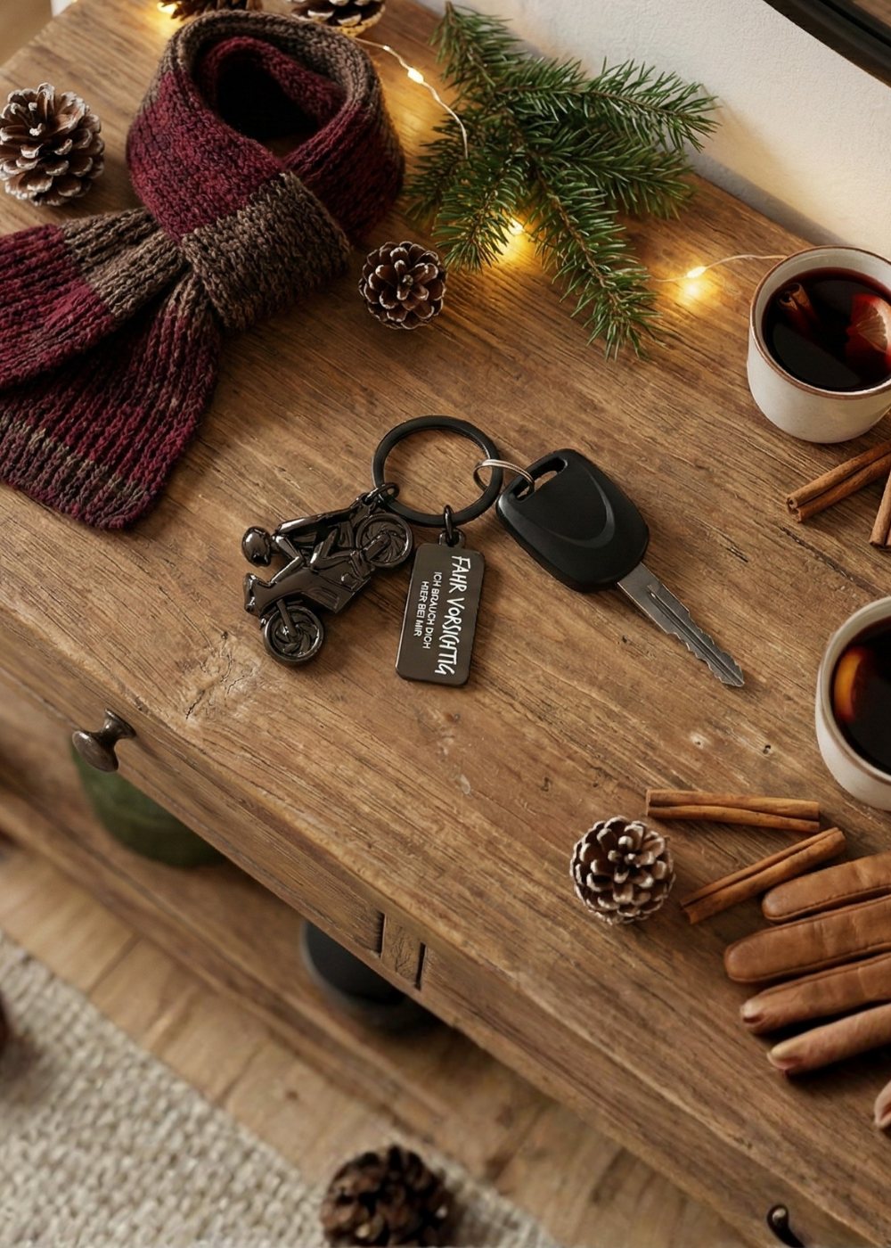 Für die Abenteuerlustigen und Motorrad-Enthusiasten haben wir das Motorrad mit Schutzengel entworfen. Dieser Schlüsselanhänger vermittelt nicht nur das Gefühl von Freiheit und Leidenschaft für die Straße, sondern bietet durch den Schutzengel auch ein ständiges Gefühl von Sicherheit und Geborgenheit für unterwegs.